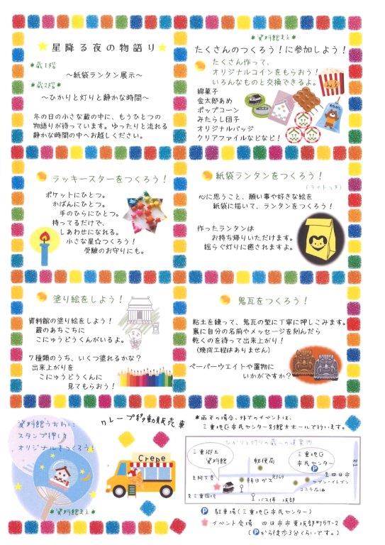 無料診断 お見積り 無料見積り・相談 電話で相談 059-331-7351 【受付】8:00~17:00【定休日】土・日・祝 電話で見積り・相談 HOME瓦のあれこれ文化財【文化財】星降る夜の物語りⅣ(三重郷土資料館 保存活用) 【文化財】星降る夜の物語りⅣ(三重郷土資料館 保存活用) 12月7日午前10時から、私の住む地区にある 登録有形文化財 三重郷土資料館にてイベントがありました。その名も「星降る夜の物語りⅣ」。なぜ昼間なのに星降る…? それはですね…、 3年前、旧三重村役場の書庫だったこの建物ができてちょうど100年目。私がヘリテージマネージャー(歴史的建造物の保存活用に係わる専門家)という資格を持っていたのがキッカケで、文化財に登録することができました。その時のお祝いがてら始まったのがこのイベント。 初回は夜のイベントで、光の切り絵作家 酒井敦美さんプロデュースのもと、地元でも忘れ去られかけていた蔵が、まさに光輝きました。だから星降る…、だけじゃないんです! 蔵という比較的遮光性のある空間を利用し、地元の小学生たちが作った「紙袋ランタン」の展示も行っているのです。真っ暗な蔵の中に、灯すランタンはまさに星降る夜。 今年で4回続いたイベント。今では保存会も立ち上がり、地域のコミュニティーづくりに一役買っています。 建物と食べ物があれば、人は集まってくるのかもしれませんね。 文化財を起点とした街づくりが、広がっていくことを期待しています。 山三瓦工業について 選ばれる理由 会社案内代表挨拶会社概要企業理念アクセスマップ 職人紹介 山三瓦工業のSDGs宣言 八代目 服部竜大が伝えたい 瓦のあれこれ コラム一覧 屋根清掃 文化財 変わった屋根 社寺 ボランティア ご挨拶 講演 瓦再考 瓦組合 資格 雨漏り 災害 時事 屋根診断 ドローン イベント 瓦グッズ 三方よしの屋根点検 屋根相談 マイスター 技能士会 ものづくり 屋根知識 大雪被害 台風被害 屋根修理 雨漏り調査 新聞記事 出前授業 葺き替え 地震 屋根調査 施工事例 施工事例一覧 屋根葺き替え工事 屋根カバー工法 雨漏り修理 屋根修理 サーモグラフィー 雨漏り調査 屋根診断 その他 お客様の声 お客様の声一覧 工事価格表 屋根リフォーム 棟瓦の葺き替え ¥27,500~(税込) その他 雨樋清掃 ¥660~(税込) 屋根修理 桟瓦の交換 ¥1,100~(税込) 工事価格表一覧 屋根リフォーム その他 屋根修理 お役立ち情報 屋根診断 火災保険 リフォームの流れ ふるさと納税サイト「さとふる」はこちら よくある質問 お問い合わせ お問い合わせ お見積もり HOME 会社案内 選ばれる理由 会社案内代表挨拶会社概要企業理念アクセスマップ 職人紹介山三瓦工業のSDGs宣言 施工事例 施工事例一覧 屋根葺き替え工事 屋根カバー工法 雨漏り修理 屋根修理 サーモグラフィー 雨漏り調査 屋根診断 その他 お客様の声 お客様の声一覧 瓦のあれこれ 屋根清掃 文化財 変わった屋根 社寺 ボランティア ご挨拶 講演 瓦再考 瓦組合 資格 雨漏り 災害 時事 屋根診断 ドローン イベント 瓦グッズ 三方よしの屋根点検 屋根相談 マイスター 技能士会 ものづくり 屋根知識 大雪被害 台風被害 屋根修理 雨漏り調査 新聞記事 出前授業 葺き替え 地震 屋根調査 コンテンツ 屋根診断火災保険リフォームの流れふるさと納税サイト「さとふる」はこちらよくある質問 お問い合わせ お問い合わせお見積もり © 2019 有限会社山三瓦工業