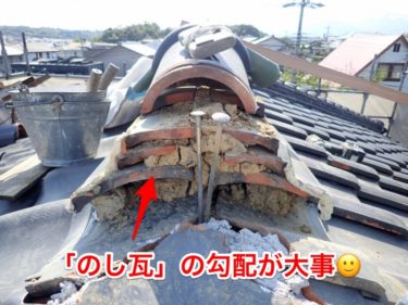 無料診断 お見積り 無料見積り・相談 電話で相談 059-331-7351 【受付】8:00~17:00【定休日】土・日・祝 電話で見積り・相談 HOME瓦のあれこれ雨漏り【ステルス📡雨漏り☔️】後編 【ステルス📡雨漏り☔️】後編 【ステルス📡雨漏り☔️】後編 前回の続きです😃。写真のビフォー・アフター📷、何が違うか🤔わかります❓ 細長くて段になってるように見えるとこ、これ「のし瓦(熨斗瓦)」と言います。のし袋🧧の厚いのをイメージしていただければよいかと。レンガ🧱のように互い違いに積んであるんですが、前と後では段数が変わってます☝️。5段を4段にしました。では何が違うか…。のし瓦を積む角度を急にしたんです⛺️。 水は低きに流れる。この原理原則はここにも当てはまります🙂。 山三瓦工業について 選ばれる理由 会社案内代表挨拶会社概要企業理念アクセスマップ 職人紹介 山三瓦工業のSDGs宣言 八代目 服部竜大が伝えたい 瓦のあれこれ コラム一覧 屋根清掃 文化財 変わった屋根 社寺 ボランティア ご挨拶 講演 瓦再考 瓦組合 資格 雨漏り 災害 時事 屋根診断 ドローン イベント 瓦グッズ 三方よしの屋根点検 屋根相談 マイスター 技能士会 ものづくり 屋根知識 大雪被害 台風被害 屋根修理 雨漏り調査 新聞記事 出前授業 葺き替え 地震 屋根調査 施工事例 施工事例一覧 屋根葺き替え工事 屋根カバー工法 雨漏り修理 屋根修理 サーモグラフィー 雨漏り調査 屋根診断 その他 お客様の声 お客様の声一覧 工事価格表 屋根リフォーム 棟瓦の葺き替え ¥27,500~(税込) その他 雨樋清掃 ¥660~(税込) 屋根修理 桟瓦の交換 ¥1,100~(税込) 工事価格表一覧 屋根リフォーム その他 屋根修理 お役立ち情報 屋根診断 火災保険 リフォームの流れ ふるさと納税サイト「さとふる」はこちら よくある質問 お問い合わせ お問い合わせ お見積もり HOME 会社案内 選ばれる理由 会社案内代表挨拶会社概要企業理念アクセスマップ 職人紹介山三瓦工業のSDGs宣言 施工事例 施工事例一覧 屋根葺き替え工事 屋根カバー工法 雨漏り修理 屋根修理 サーモグラフィー 雨漏り調査 屋根診断 その他 お客様の声 お客様の声一覧 瓦のあれこれ 屋根清掃 文化財 変わった屋根 社寺 ボランティア ご挨拶 講演 瓦再考 瓦組合 資格 雨漏り 災害 時事 屋根診断 ドローン イベント 瓦グッズ 三方よしの屋根点検 屋根相談 マイスター 技能士会 ものづくり 屋根知識 大雪被害 台風被害 屋根修理 雨漏り調査 新聞記事 出前授業 葺き替え 地震 屋根調査 コンテンツ 屋根診断火災保険リフォームの流れふるさと納税サイト「さとふる」はこちらよくある質問 お問い合わせ お問い合わせお見積もり © 2019 有限会社山三瓦工業