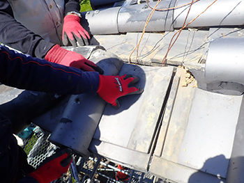 山三瓦工業による施工中の様子